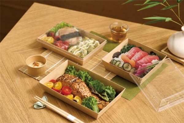 電子レンジ対応可! 積み重ねが可能な設計で、収納・陳列・配送の各工程でスペースと効率を大幅に向上できます。食品安全基準に準拠し、環境にも配慮した素材を使用した、新しいクラフトトレイシリーズです。